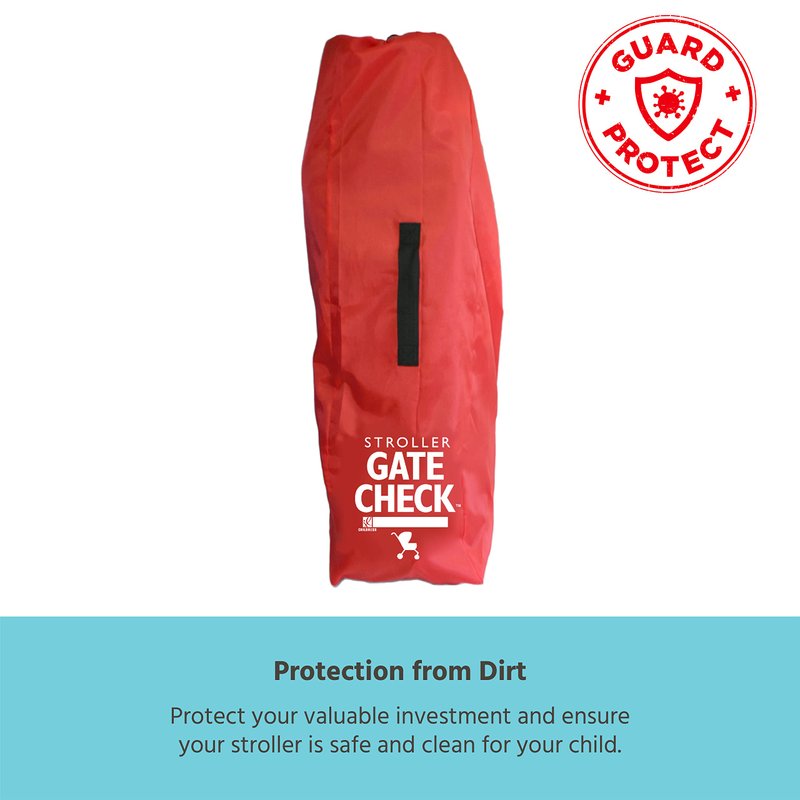 - BRIGHT COLOR FOR PEACE OF MIND - Bright, red color and large GATE CHECK logo identify your stroller and ensure safe return to you at the airplane gate. ID box to write name. Webbing handle for easy lifting. NOT RECOMMENDED FOR BAGGAGE CHECK
