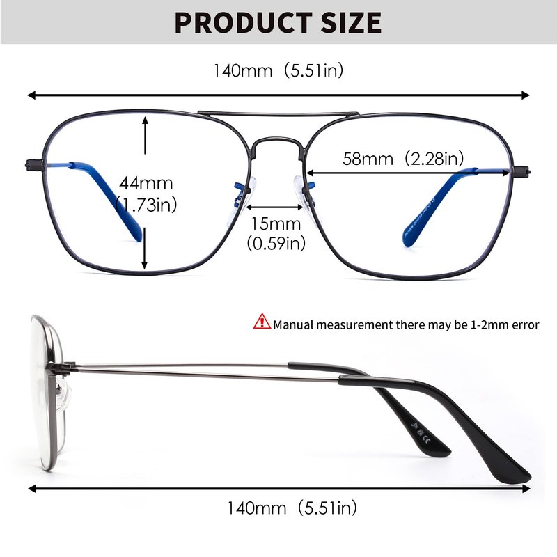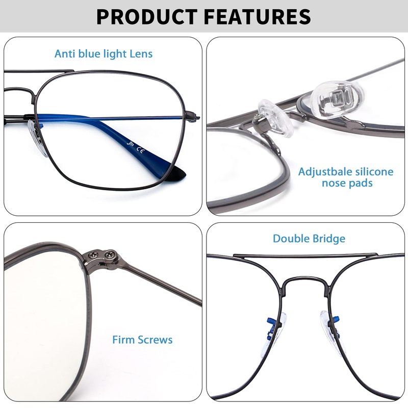 - Anti-blue light Lens- JM square aviator blue light blocking eyeglasses can filter harmful blue rays, reduce eyestrain, prevent eye dry, minimize headache and make you sleep better