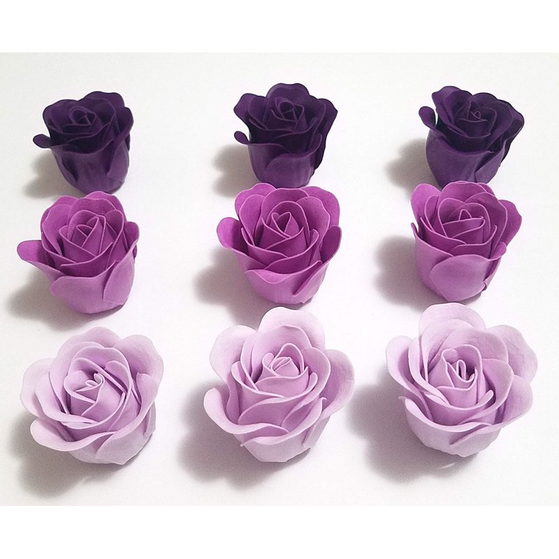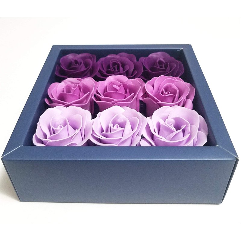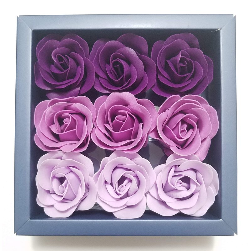 - Package includes 1 Boxes of Flora Scented Rose Soap. Each boxes containers 9 purple roses with 3 different colors (As the pictures shown).