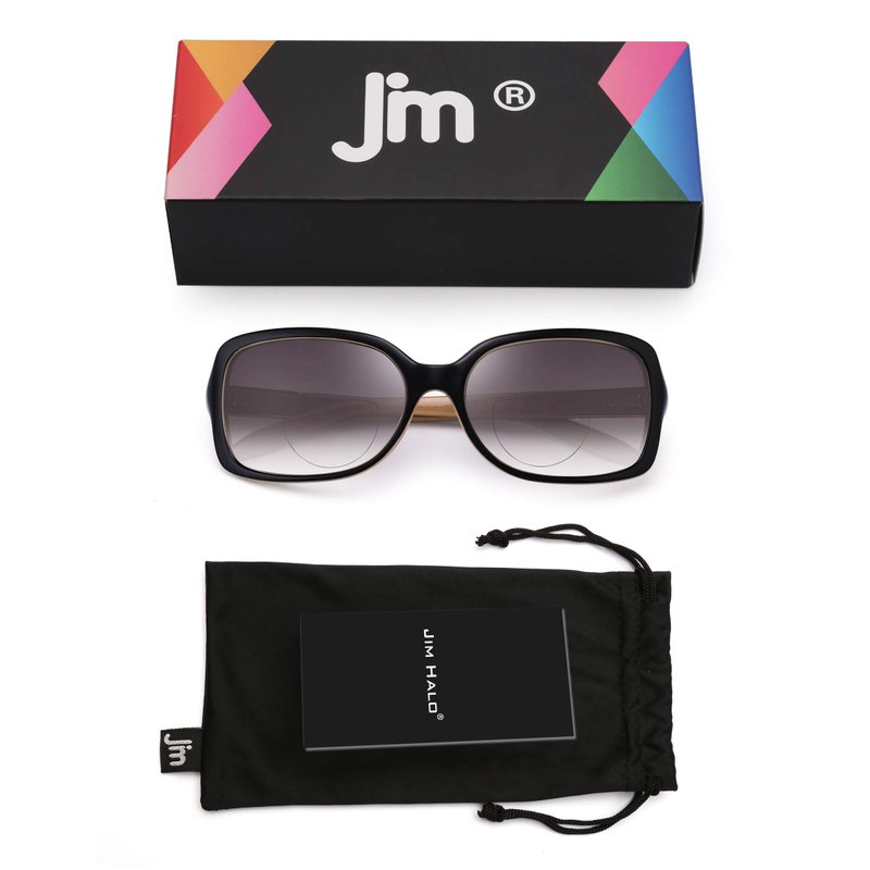 - Bifocal Gradient Sunglasses Lens - Regular sunglasses on top, optic powers at the bottom. JM bifocal reading sunglasses can block 100% of both of UVA and UVB rays. Restore true color, eliminate reflected light and scattered light and protect eyes perfectly.