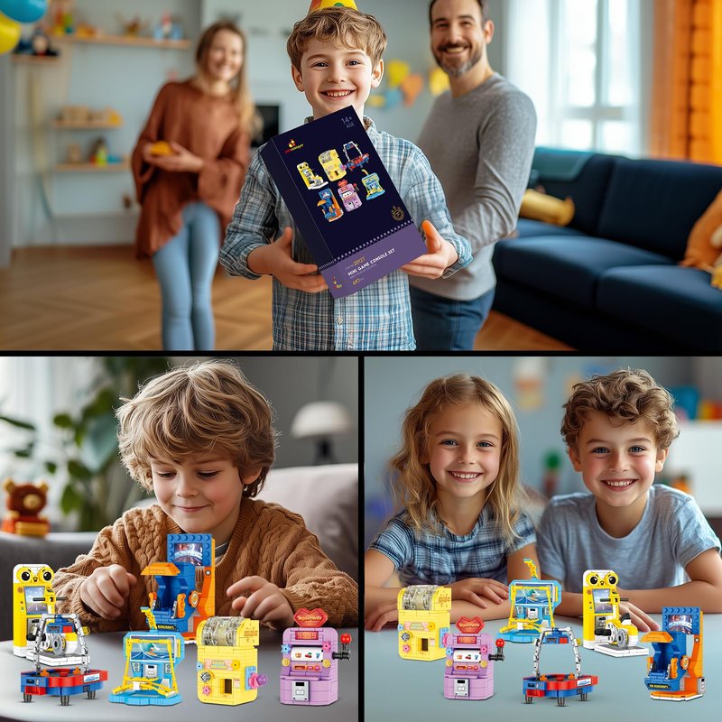- 【Funny Kids Party Favors】Each console building set includes fine detail designs. Such as moving skateboards, rotating seats and control levers, reproducing the operating experience of real game consoles. The built-in mechanism allows the block models to simulate dynamic effects, enhancing the sense of interaction and fun. Let the kids enjoy the exciting experience of gaming
