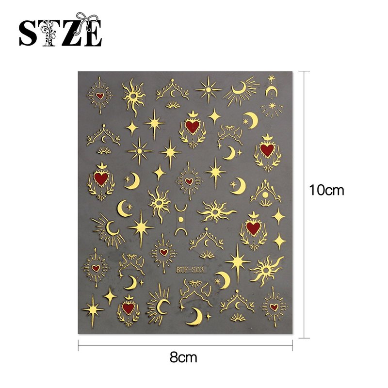 JMEOWIO 9 Sheets Moon Star Nail Art Stickers Decals Self-Adhesive Pegatinas Uñas Sun Nail Supplies Nail Art Design Decoration Accessories