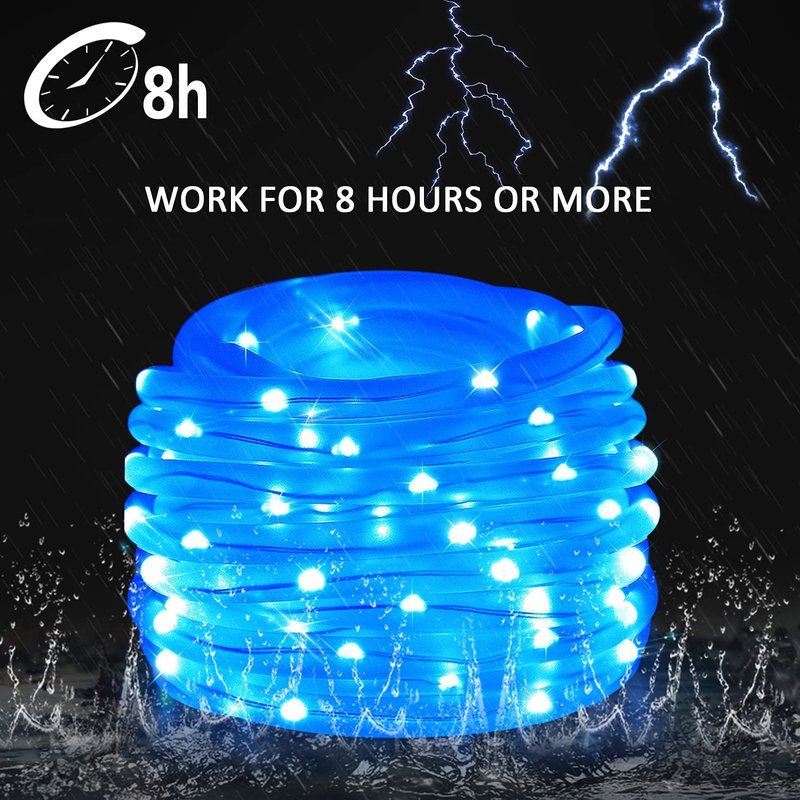 - [SAFE IP65 WATERPROOF &PVC HOSE PROTECTION] What's more amazing is that the 120LED low-voltage solar rope light passed IP65,it is not only waterproof, also frost-proof and sun-proof. It is more durable than other ordinary solar string outdoor lights, it can meet your different indoor outdoor decor throughout the year.Decorate the edge of your swimming pool with the solar rope halloween lights to make your swimming pool radiate charming and romantic brilliance,which will add lots of fun.