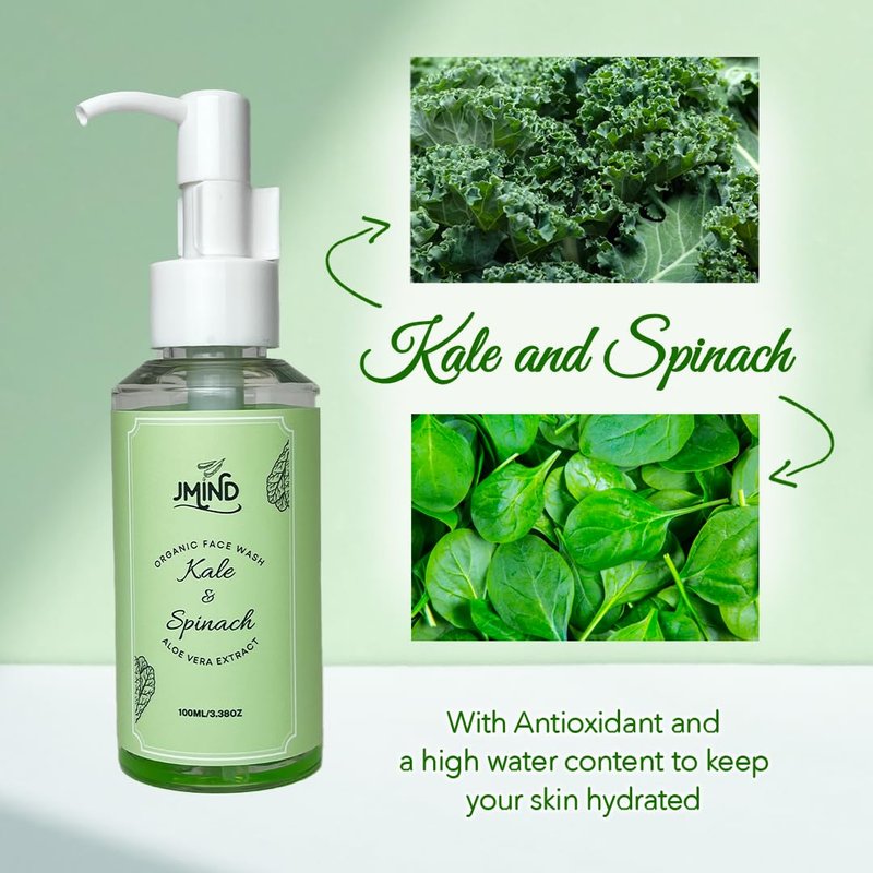 JMind Kale & Spinach Organic Face Wash - Vegan Daily Face Wash - Green Tea Facial Cleanser - pH Balanced - All Skins (3.38oz)