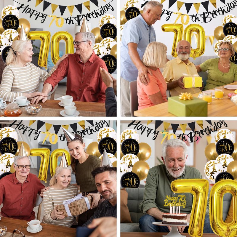 - 🎁 Used widely: Whether it's a 70th anniversary or a 70th birthday party, our 70th birthday decorations for boys will create a festive atmosphere and make the birthday boy or girl feel special. Our black gold birthday decorations are not only suitable for birthday parties, but also suitable for wedding parties, graduation parties, retirement party decorations, New Year party and more. Mixing black gold birthday decor colors looks very attractive and can create a dreamy and unforgettable party.
