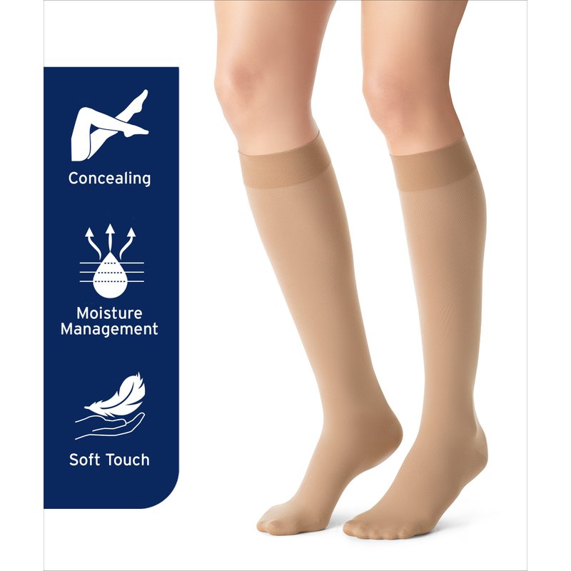 JOBST Opaque Knee High with SoftFit Technology Band, 20-30 mmHg Compression Stockings, Open Toe, Medium, Natural