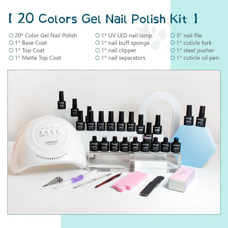 JODSONE 23 PCS Gel Nail Polish Kit with U V Light Popular Color with Durable Base Coat Matte Glossy Top Coat