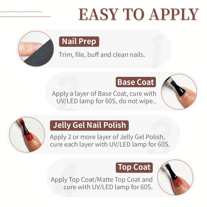 - Long-lasting and Durable: The gels can last about 21 days under the curing of the nail art lamp, and still maintain a gorgeous lustre. Nail lamp and nail tools are not included in this product.