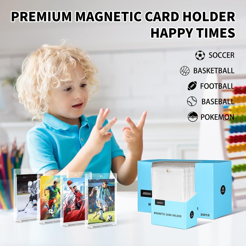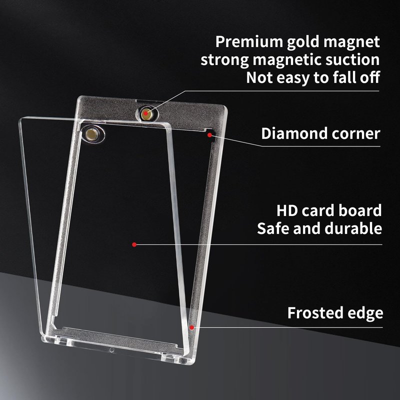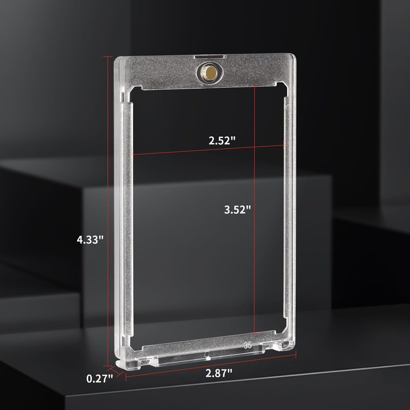 JODSSXI premium magnetic card holders designed as the final destination for your valuable cards,The two-piece ONE-TOUCH holders are uniquely designed with slide-in hinges and magnetic closure, so you'll never have to use a screwdriver again. This one touch card holder offering 35PT thickness, standard size compatibility to fit standard size (2.5" x 3.5") sports trading cards or gaming cards and so on, These durable holders provide ultimate protection and convenient storage for your valuable cards, enjoy the benefits of one-touch feature, and PS material construction. Showcase your collection in style with our JODSSXI magnetic card holders - perfect solution for collectors and enthusiasts alike!