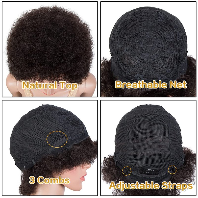 • 【Afro Human Hair Wig】 100% Healthy human hair, Brazilian hair wig, soft and smooth, can last long time with good care.