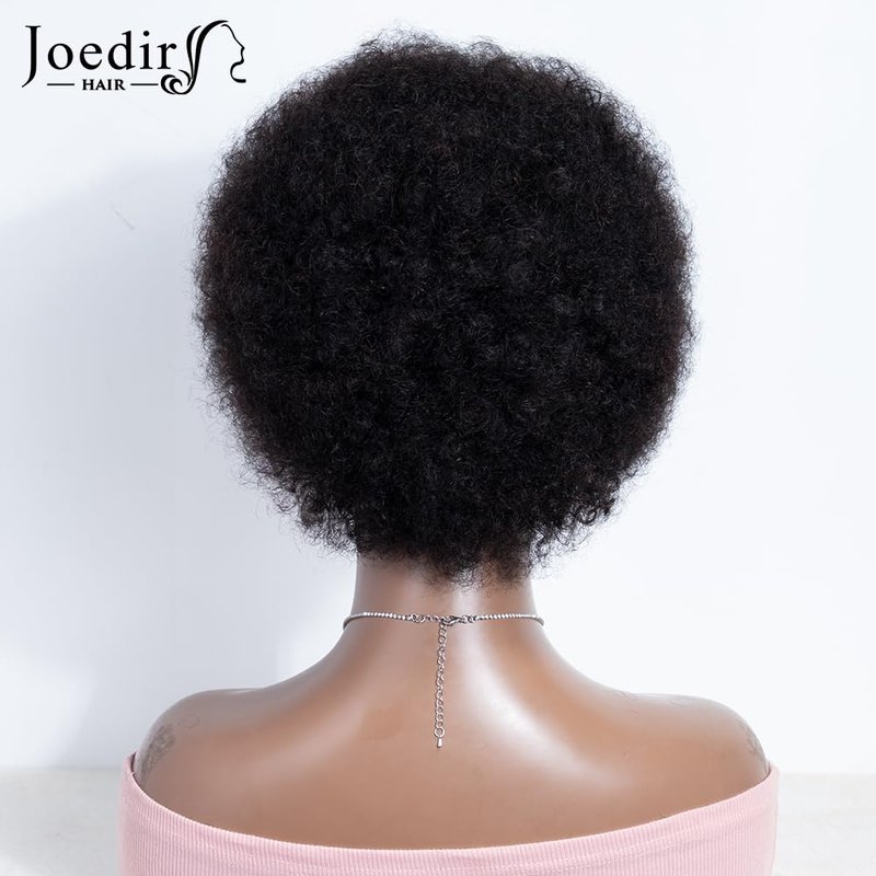 JOEDIR HAIR Short Afro Human Hair Wigs for Black Women Natural Black Afro Curly Wig Soft and Bouncy Glueless Wig 130% Density (Color: Natural)
