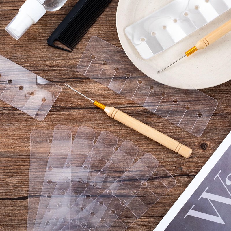 Joez Wonderful 15pcs Hair Extension Tool Heat Shield Guards, Multi Hole Shield Spacers Fusion Glue Protector Templates with Hook Pulling Needle for Hair Extensions