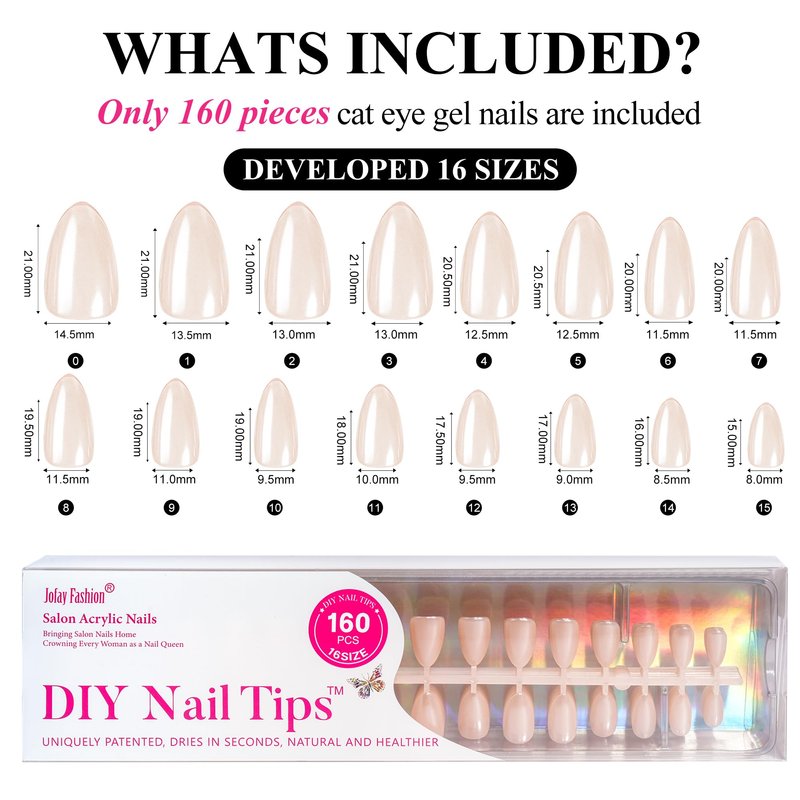 - 【More Sizes & Quantities】The fake nails kit is composed of a total of 160 pieces of 16-sized nail pieces. The 16 sizes are guaranteed to fit your nails perfectly.