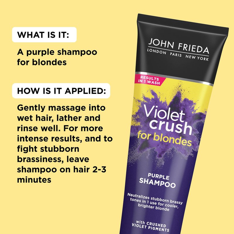 - BEST USED WITH VIOLET CRUSH PURPLE CONDITIONER - Use with John Frieda Violet Crush Purple Conditioner to achieve optimal results.