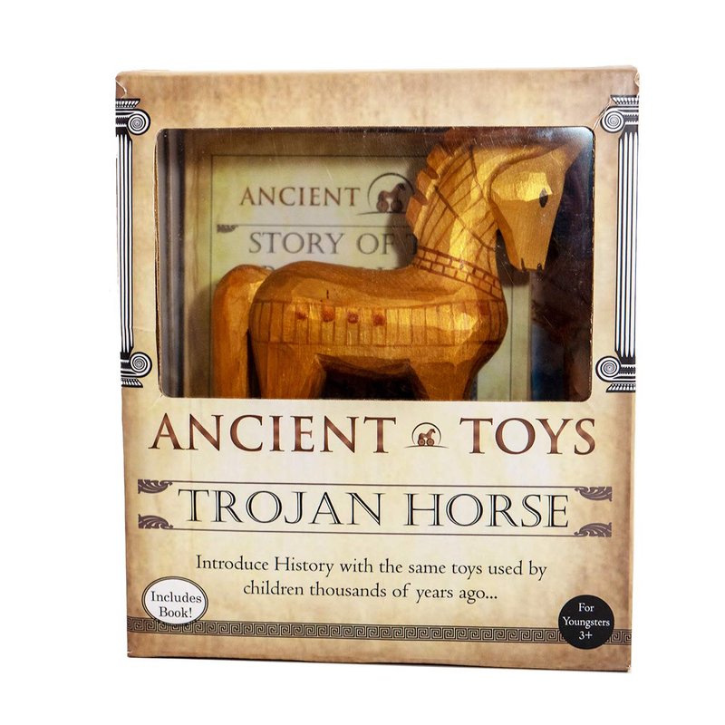 Handcrafted Wooden Trojan Horse Toy brought to you exclusively from Ancient Toys. Before there were computers, video games and tablets, children played with wood toys like these. Now your child can travel through time to ancient places and learn as they play like children did thousands of years ago. Ancient Toys are designed to allow children about the past. At sites all over the world, archaeologists have found dolls, pull toys, horses and games. Children of the past used their imagination to play out the stories that had been passed down to them through the generations. Ancient Toys provides a modern way that kids can learn about history in a fun and entertaining way.