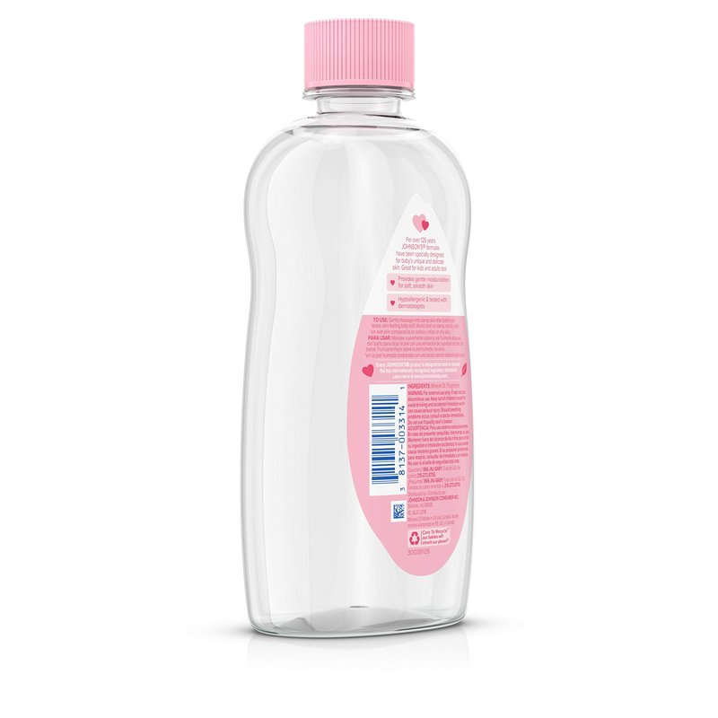 - 14-fluid ounce bottle of pure baby oil, formulated to help moisturize babies' delicate skin, and protect skin from dryness, great for relieving dry skin or rough patches