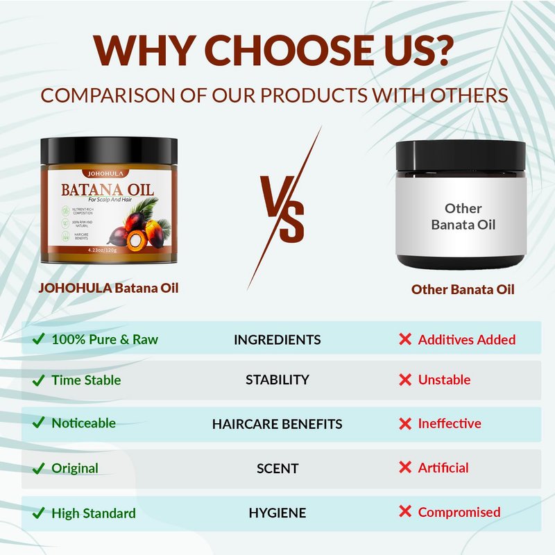 JOHOHULA Batana Oil is your ultimate choice for natural hair beauty. This Batana Oil is perfect for both everyday hair care and special occasions like weddings, dates, or important meetings, adding a natural sheen and vitality to your hair. Whether in the comfort of your bathroom or basking in the outdoors, it offers comprehensive care and protection for your hair. Experience the magic of Batana Oil now and let your hair radiate with natural brilliance!