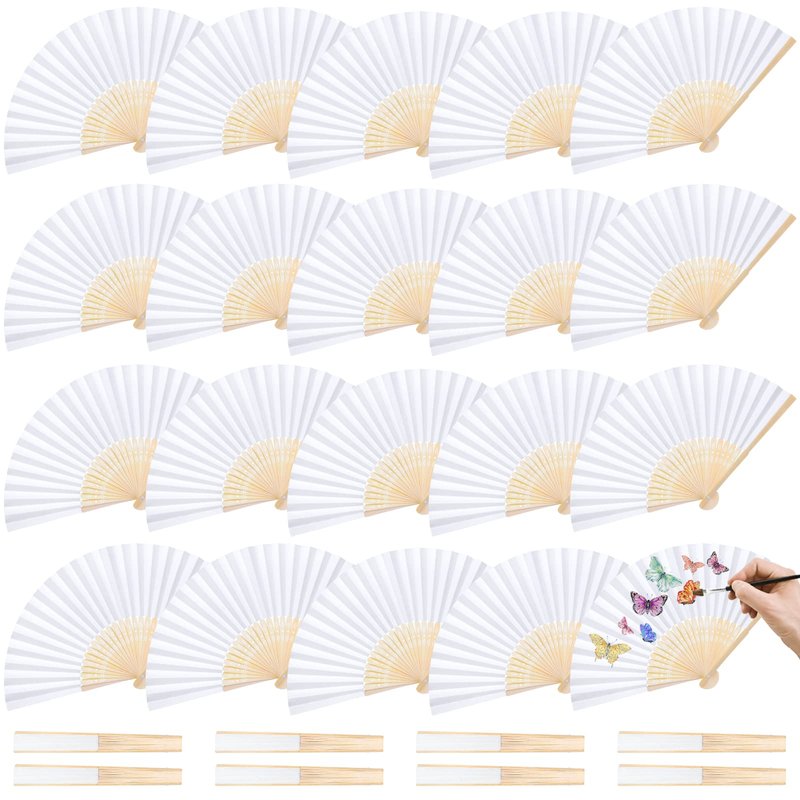 - Super Value Pack - 28PCS white bamboo folding paper fans, enough for wedding party, bridal party, class crafting project, great for sharing.