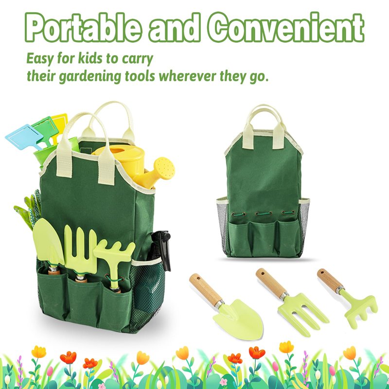 - 🌻【Portable and Convenient】 The included tote bag makes it easy for kids to carry their gardening tools wherever they go. Whether they're playing in the backyard, at the park, or on a camping trip, this set is perfect for on-the-go fun.
