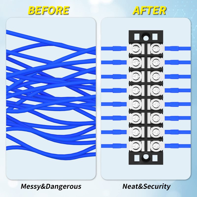 - Easy to Install - There are two screw holes on each side of the terminal block. You only need to fix them with screws and connect cables. Terminal strips greatly simplify and tidy up your installation.
