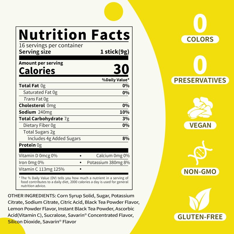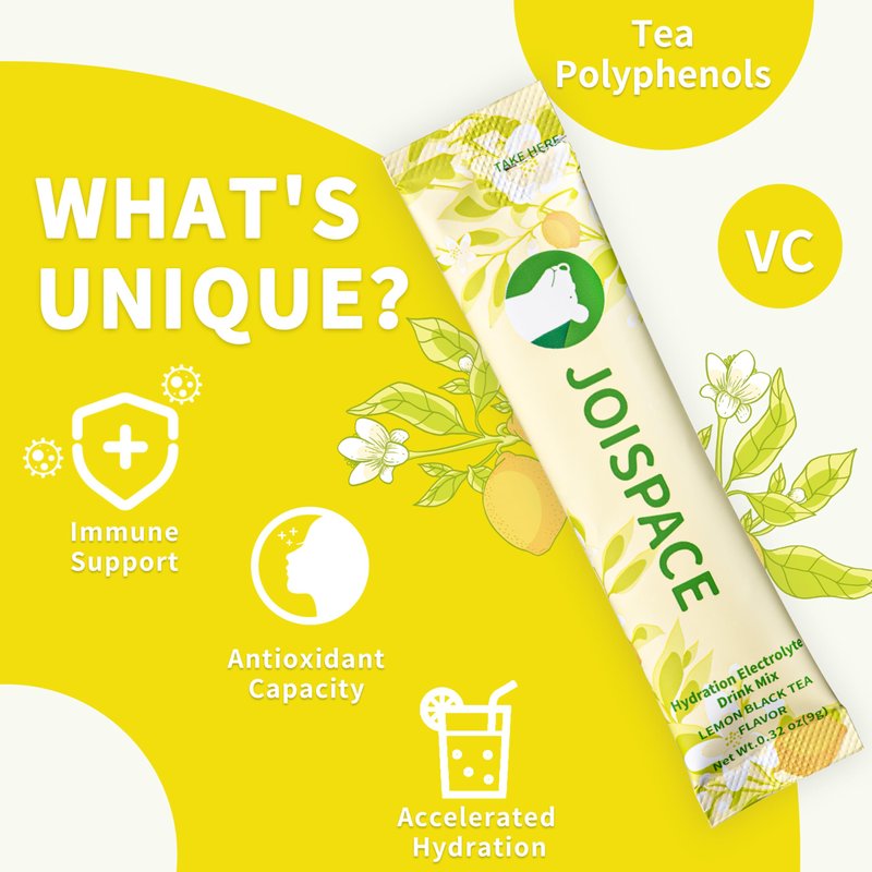 JOISPACE Electrolyte Drink Mix - Lemon Black Tea - Hydration Powder Packets with Tea Polyphenols & Ascorbic Acid | Non-GMO, Gluten Free, Vegan Electrolytes Powder Packets | 16 Servings