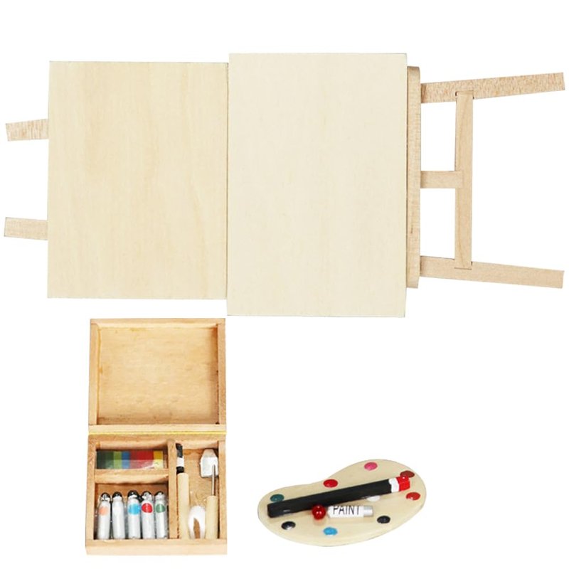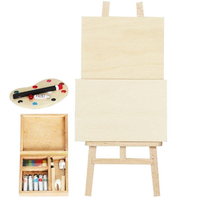 jojofuny Doll House Accessory Painting Tool Set Wooden Easel Dollhouse Furniture Decoration Set Balcony Patio Furnitures Decoration Accessories 1 12 Scale