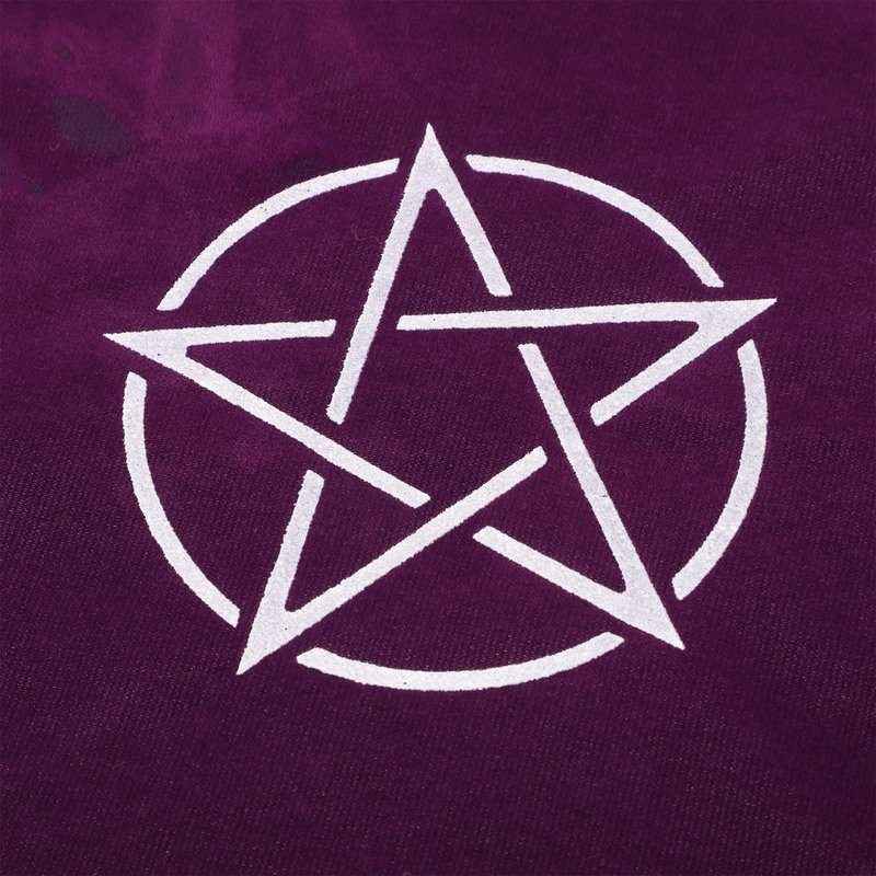 jojofuny Velour Divination Pentacle Table Cloth, 1 Set Altar Tablecloth with Tarot Cards Storage Bag for Wiccan Witchcraft Supplies, 19.6 Inch (Purple)