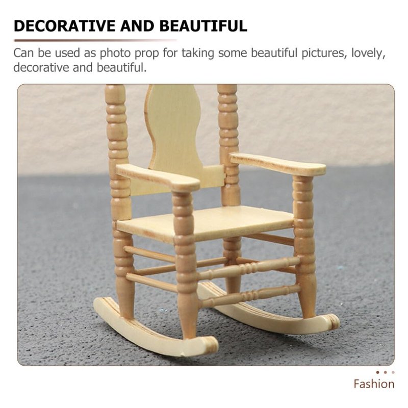 - Simple Design: You will get a mini mold chairs in wood color, which color is retro and simple, and will not fade.The smooth wood-colored rocking chair design adds comfortable and comfortable decoration to your dollhouse, creating a dollhouse of your own. It is a very exquisite dollhouse ornament