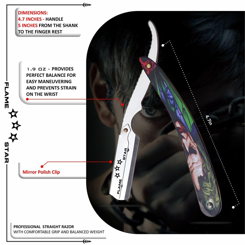 Joker Coated Changeable Blade Professional Barber Straight Edge Salon Hair Cut Razor 100% Stainless Steel with Blades By "FLAME STAR"