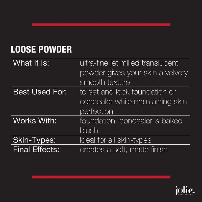 - Silky, loose powder imparts a soft, matte, cashmere finish. Perfects any look for naturally polished, porcelain-looking skin.