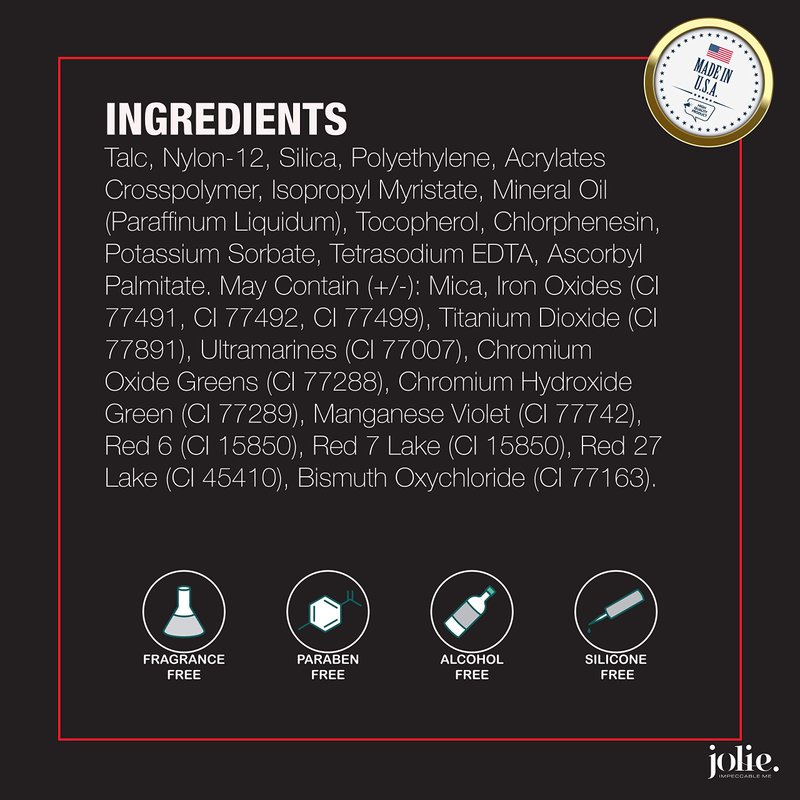 An artistry essential, this lightweight powder brings a flawless, soft-focus finish to all complexions. The ultimate finishing touch, Jolie loose powders maintain the illusion of a fresh and radiant face. Ultra-silky, micro-fine powder provides sheer, light coverage with a soft matte finish--setting and perfecting makeup as it evens skin tone. Photo-reflective pigments help disguise imperfections without emphasizing lines. Airy and non-occlusive, it lets the skin breathe freely and forms a genuine "pollution-fighting" shield that limits the absorption of harmful particles. The skin preserves its natural beauty with each new application. Created in three shades for all skin tones, the soft-focus effect subtly blurs the look of fine lines and imperfections, and doesn't settle into lines or pores. The result is natural-looking, never powdery or cakey. Paraben-free.