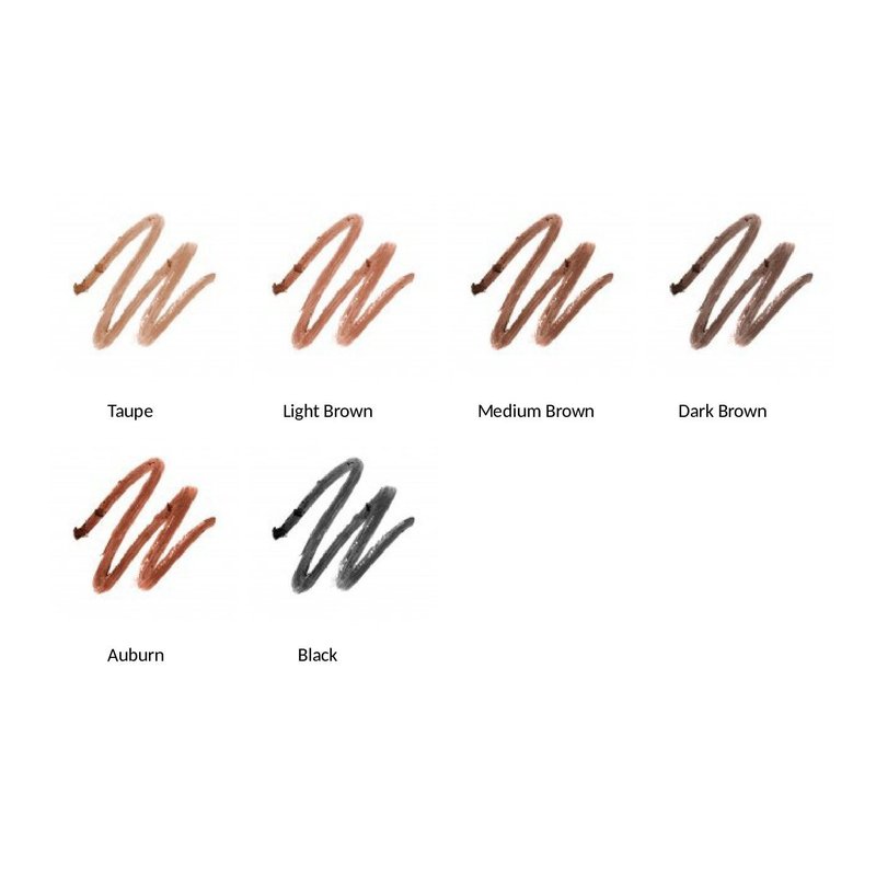 - Eyebrow pencils available in 6 shades designed to match natural brow hair color.