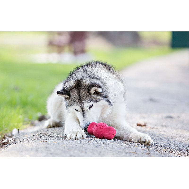 - Made from thick, natural rubber with unique raised surfaces to help clean teeth while dogs chew