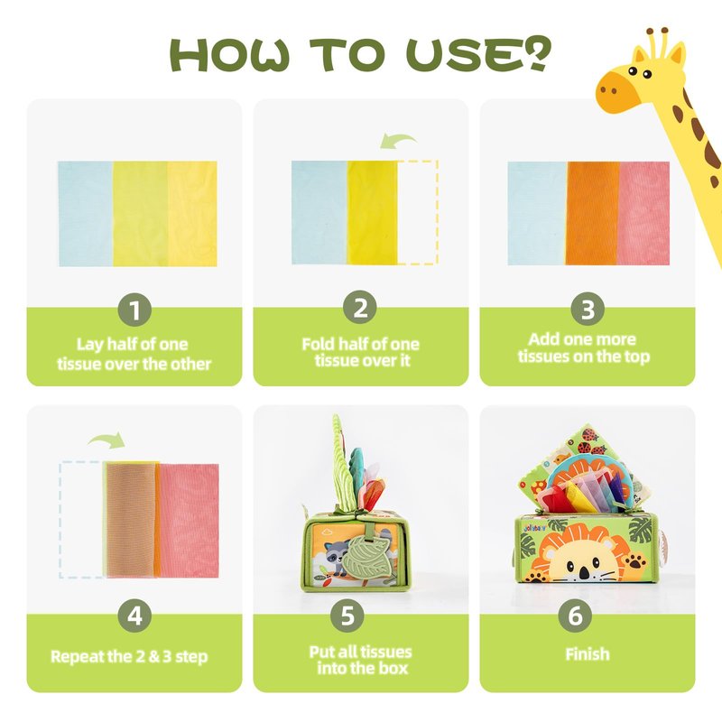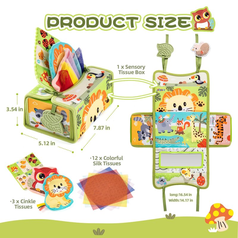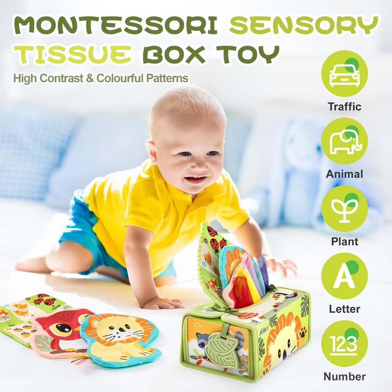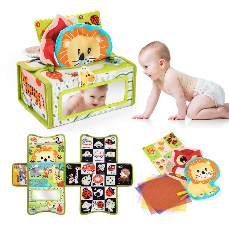 - SAFE, SOFT, AND PERFECT FOR GIFT! Made with safe, soft materials, this infant toy is perfect for little ones to gnaw on, soothing sore gums. Baby sensory toys free of any unpleasant smells and makes a fantastic gift for birthdays, holidays, or any special occasion. Give the gift of fun and learning with this adorable and practical tissue box toy. It's sure to be a hit with both babies and parents!