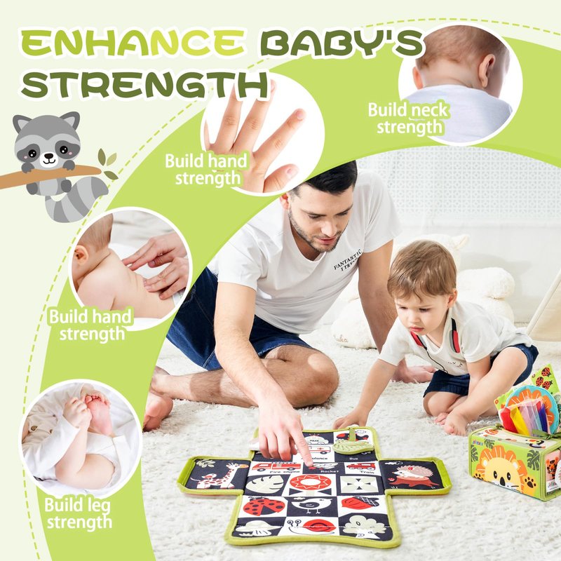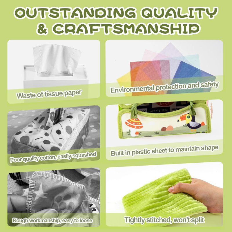 - MORE THAN JUST A NEWBORN TOY! It's a Tissue Box Too! This multi-functional wonder doubles as a practical tissue box. The sturdy plastic insert ensures it keeps its shape, and the easy-to-clean fabric makes it a breeze to maintain. No more messy tissues all over the floor! This tissue box is both cute and functional, making it a must-have for any parent