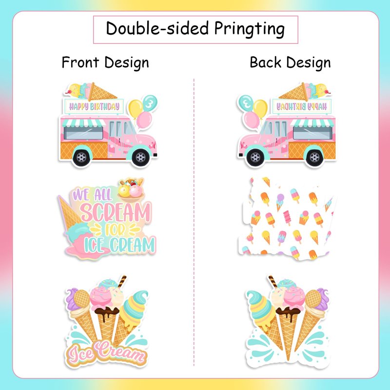 - Unique Design: The ice cream honeycomb centerpiece is specially designed for girl 3rd birthday decoration, printed with various ice cream patterns and ice cream truck which is popular with children and adds a strong atmosphere to your girl ice cream theme 3rd birthday party