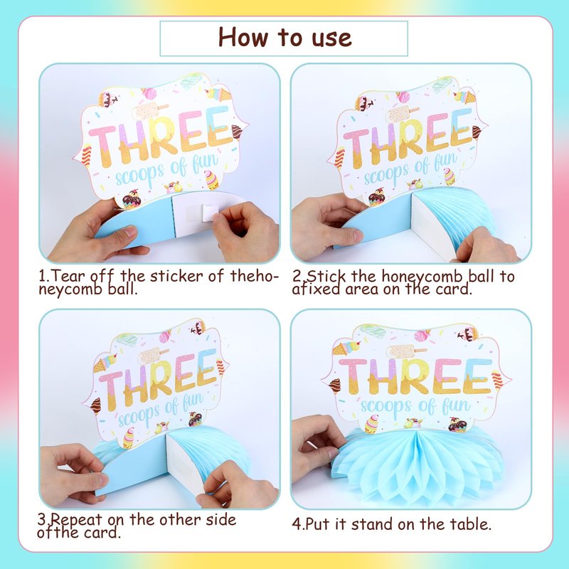 - Easy to Use: The ice cream honeycomb centerpiece is easy to assemble, you just need to paste the honeycomb with glue that come with the bottom of the honeycomb, then you can put the honeycomb to anywhere you like to decor, save your time