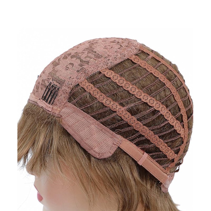- Adjustable Wig Cap Construction: Ear to Ear 13.5”-13.75”. Cap Circumference 21"-22.5”. Front to Back 14”-14.5”. Two adjustment straps can be Linked to a fixed position to fit different sizes. Easy to install, easy to take off.