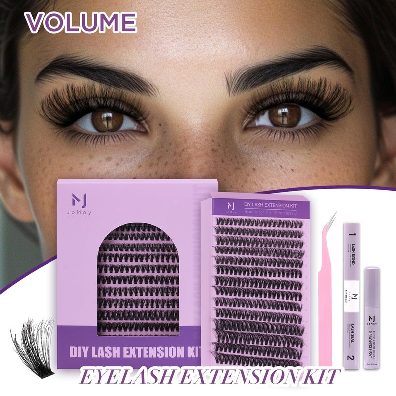 JoMay DIY Lash Extension Kit 100D Volume Lash Clusters,280 pcs diy eyelash extensions with Lash Bond and Seal, Lash Remover for Individual Eyelashes Beginners