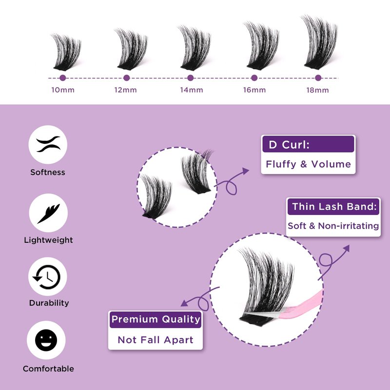 - Lengths for Every Look: With lengths ranging from 10mm to 18mm and 280 pieces per set, our Cluster Lashes let you customize your look to perfection. Whether you want the girl-next-door charm or a glam party queen vibe, these lashes have got you covered.