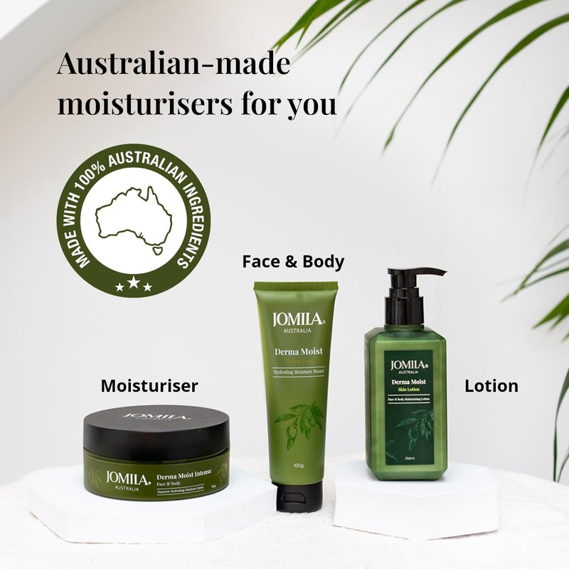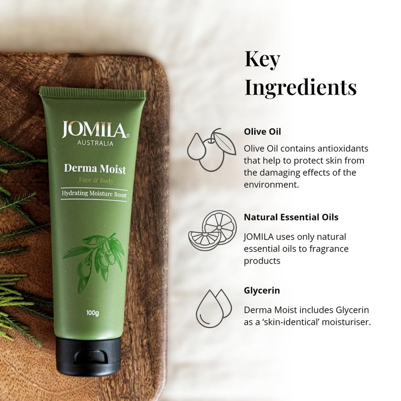 • 100% AUSTRALIAN MADE: The Jomila Derma Moist face moisturiser is made entirely in Australia with the finest, responsibly sourced ingredients. Our formulation features a synergistic blend of pure, skin-affirming ingredients like Olive Oil, Glycerin, and Natural Essential Oils for fragrance.