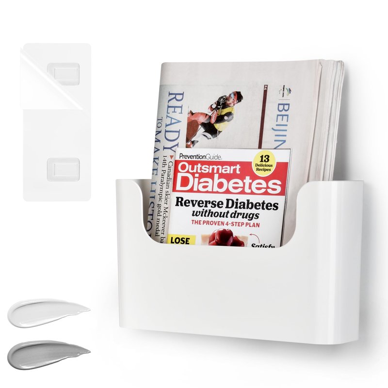 No Drilling File Holder Wall Mails Magazines Organizer Adhesive Door Mount, Single Pocket, Off-white
