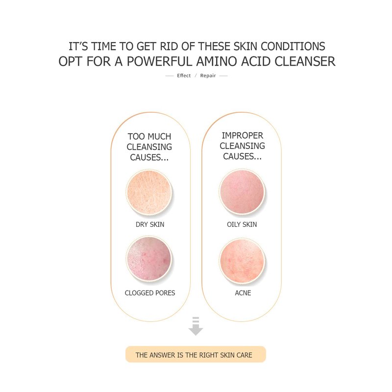 - AMINO ACID CLEANSING CLEANSER MILK120g THE FOAM IS LIGHT, DENSE AND DELICATE LIKE CLOUDS, SOFT AND CLEAN, EASILY REMOVES OILY DIRT AND MAKEUP RESIDUES FROM THE SKIN, CLEARS PORES, AND LEAVES THE SKIN CLEAN, HYDRATED, COMFORTABLE AND NOT TIGHT AFTER WASHING.