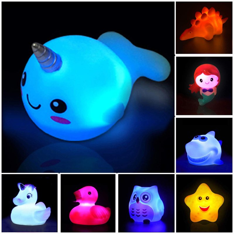 8 Packs Rubber Animals Light Up Floating Bath Toys Flashing Color Changing Light in Water Bathtub Shower Games Toys for Baby Kids Toddler