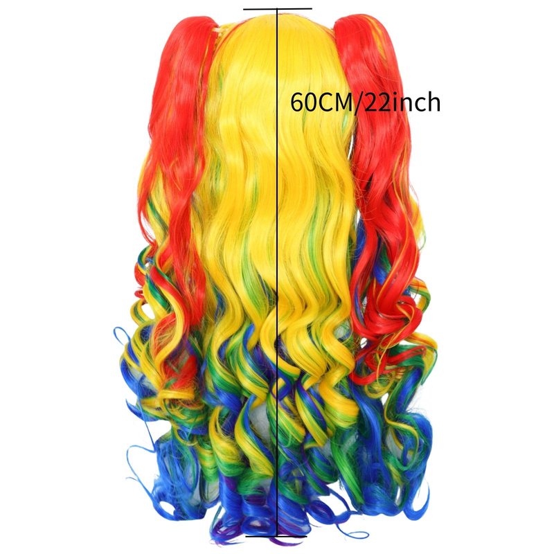 Description: JoneTing Rainbow Ponytail Wig【+Wig Cap】Rainbow Cosplay Wig with Pigtails Curly Rainbow Wig with Double Ponytails Long Curly Multi-Red Wigs for Halloween Christmas Party Costume Wigs for Cosers Description: FASHION COLOR:multi-color Length: Long Top of ponytails to the end about 20 inches SIZE: circumference of wig about 22.5 inches, which is average size. DENSITY: 180% CAP STRUCTURE: The size is adjustable and no pins or tape should be required. It should be fit on most people. you should need to do is adjust the hooks inside the cap to the correct size to suit your head. MATERIAL: 100% Synthetic wig fiberPACKAGE INCLUDING:1 multi-color rainbow wig+1 wig cap
