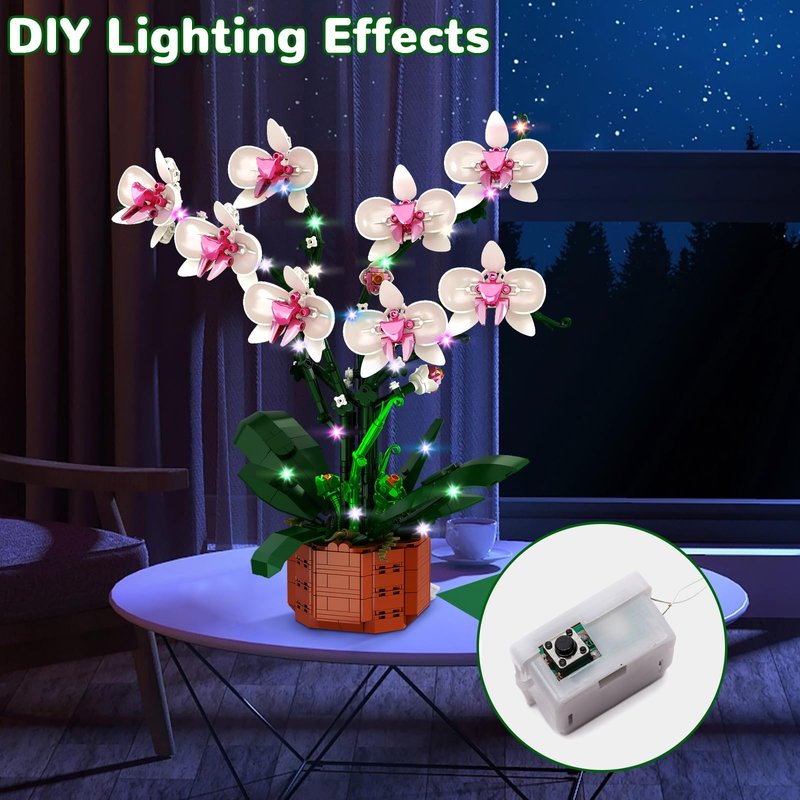 Joniuuca Orchid Building Blocks Set with LED Light – DIY Artificial Flower Kit for Home Decoration, for Adults and Kids 6-14,Ideal for Christmas,Birthdays,and Special Occasions,729-Piece
