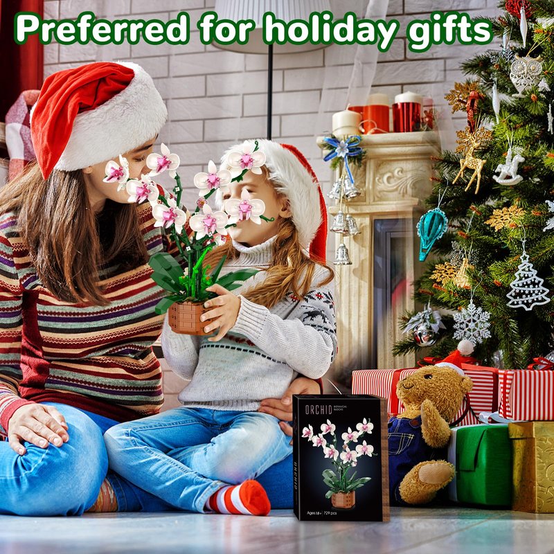Experience the Beauty of Orchids with Our 729-Piece Building Block Set Transform your space with our stunning Orchid Building Blocks Set, which features 729 intricately designed pieces. Measuring 14.96 x 10.23 x 14.17 inches, this set allows you to create a lifelike orchid that adds a touch of elegance to any room. Each stem, flower, root, and leaf is meticulously crafted to capture the realistic beauty of real orchids. Made from durable, high-quality ABS plastic, this artificial flower will never fade or wither, offering a maintenance-free way to enjoy floral beauty year-round. Perfect for decorating bedrooms, living rooms, offices, or dorm rooms, it provides timeless charm without the need for care. The set comes with a detailed construction manual, making assembly a fun and easy project for both adults and children. Whether you’re looking to bond with family or friends, or simply enjoy a relaxing DIY activity, this set offers a rewarding experience. As a thoughtful and unique gift, it’s ideal for special occasions such as birthdays, Christmas, Valentine’s Day, and Mother’s Day. The orchid building blocks set also features LED lights that illuminate your creation, adding an enchanting glow to its exquisite design. Elevate your home décor and delight in the beauty of orchids with this engaging and elegant building block set.