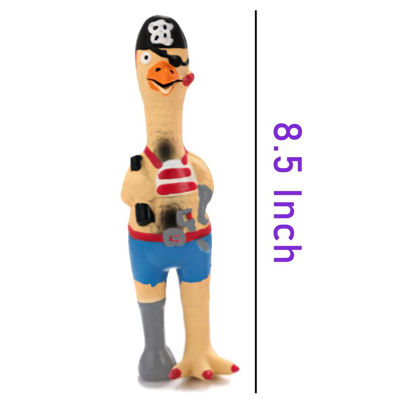 jooee Screaming Rubber Chicken Dog Squeaky Toy, 8.5 Inch Tall, Latex Chew Molar Dog Toy (Pirate)