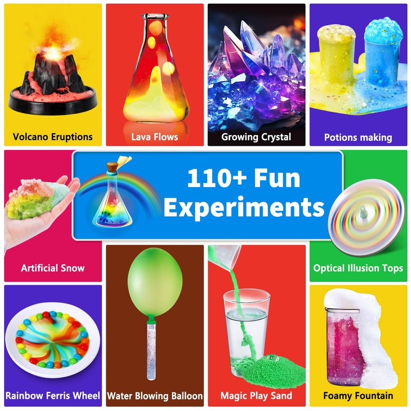 • Over 110 Science Experiments: From volcano eruption and rainbow rain to wiggly worms and lava flows, this surprising science kit is packed with many fascinating experiments for kids to spend hours experimenting and learning about science.