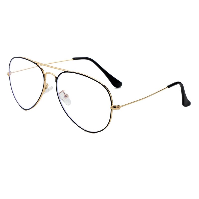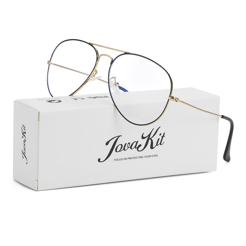 JOVAKIT Aviator Clear Lens Glasses for Women Men Non-prescription Eyeglasses Blue Light Blocking Lens Metal Frame (Black/Gold)